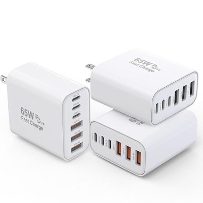 USB C Charger for iPhone 17 16,60W Multiport Type C Charger Fast Charging,2Pack 5-Port USB C Phon Chargers Block 10FT Long Type C Charging